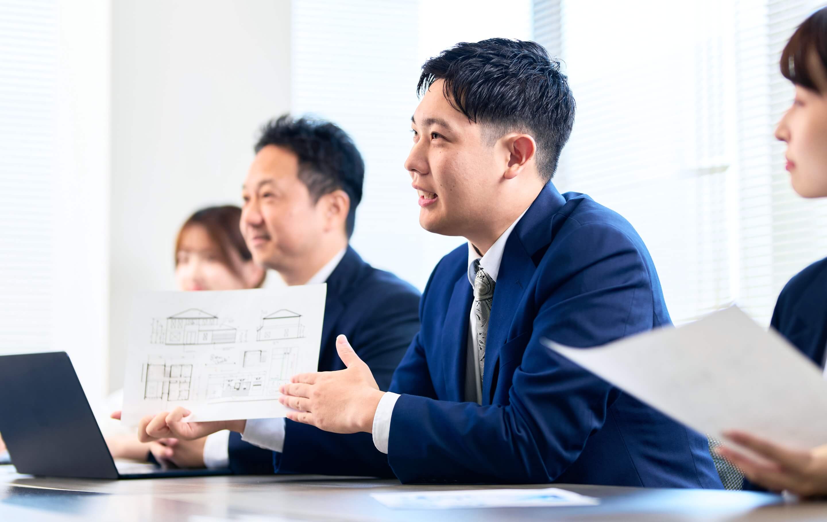 土地の仕入れから、企画、建築、そしてプロジェクト管理まで。4つの職種の専門性と連携が、一棟の物件を完成へ導きます。