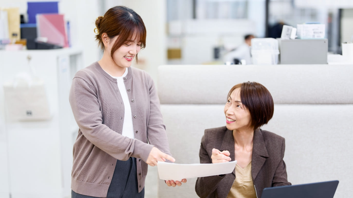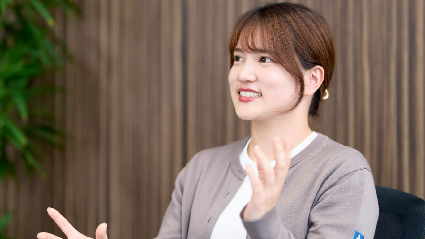 現在の業務は、入社時に営業に関わりたいと言っていた私の意向を、面接官である人事の方が覚えていてくれたから担当できたものでした。どの業務も、私のやりたいことや得意なことを汲み取って仕事を任せてくれるので、自然と今の仕事にやりがいを見出せています。