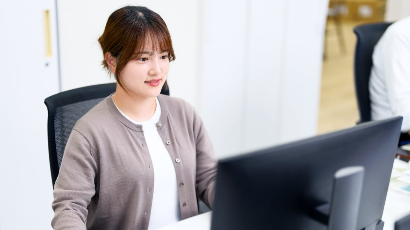 私が所属する業務部では、契約書関連のチェックやプロジェクトの予算管理、支払い状況確認のほか、オフィス環境の整備やホームページの作成まで、さまざまな役割を担っています。そこに加え、不動産投資商品の運営にも携わっており、分配金の管理などを任されています。入社直後は総務業務を担う部署に在籍していた時期もあり、これまで3部署を経験してきました。