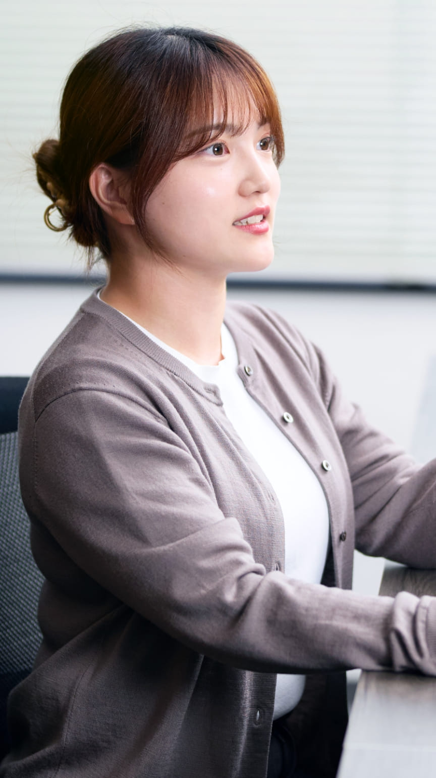 決して“放任”ではなく、挑戦する姿勢を尊重しながら、困ったときには必ず助けてくれるあたたかい空気があります。若手の意見も前向きに取り入れてくれるので、遠慮せずに自分の考えを伝えられる。自分で調べ、考え、動いた結果を「どう思いますか?」と持っていける安心感があるからこそ、責任をもって行動でき、前向きに成長していけるのだと思います。