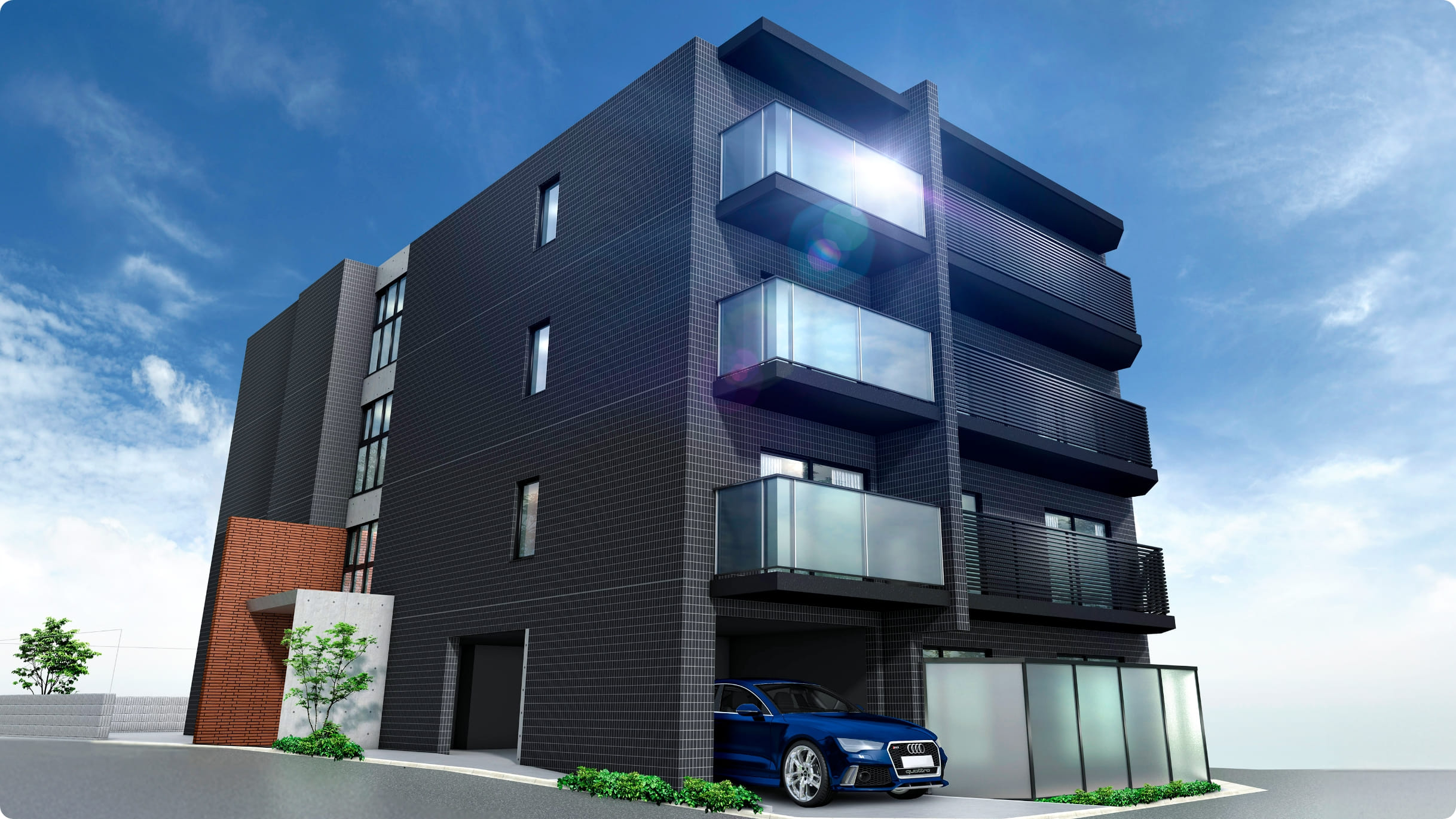 企画段階でこだわったのは、25平米1Kタイプの部屋をできるだけ多くつくり、一人暮らしの若年層をターゲットにした「エレベーターなしの4階建て」仕様にした点です。通常は天井を高めにとって3階建てにするところを4階建てにすることで、さらにワンフロア分の賃料を得ることができるように設計しました。また、最上階の賃料を下げることで、「階段の上り下りは苦にならない、もしくは若干苦になるが、その分明るく眺望条件の良い高層階に比較的安く住めることがうれしい」というニーズを取り込もうと考えました。1階には専用庭をつくり、ガーデニングを楽しんだり、朝日を浴びてゆっくりしたりできるリラックス空間を設置。多様なライフスタイルに応えるプランを追求しました。